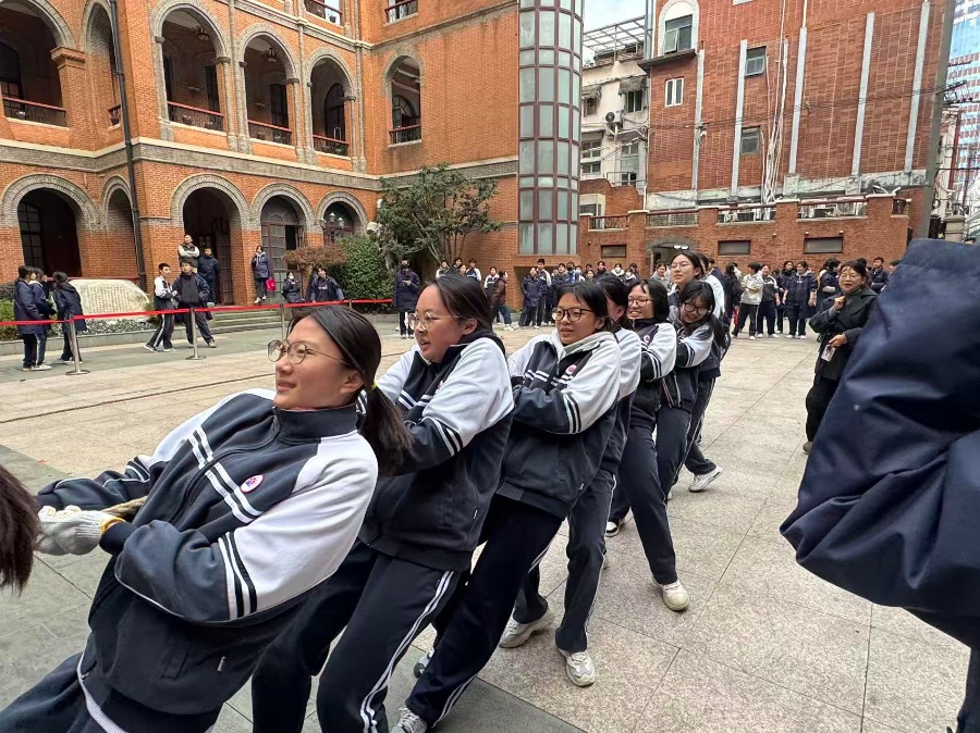 操场上传来震耳欲聋的呐喊声,我们班的拔河比赛正酣!队员们脚抵着脚、肩并着肩,身子后倾如拉满的弓,双手紧紧攥住粗麻绳,指节因用力而发白。