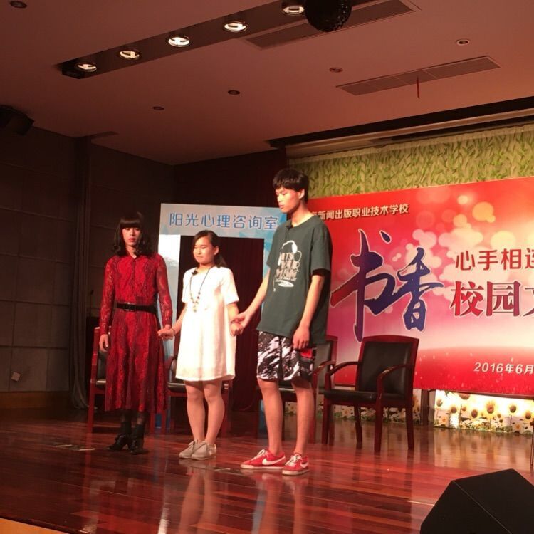 第二个出场的节目是心理话剧:《爸爸妈妈别吵了》。话剧梗概:爸爸妈妈每天都吵架,使得女主无心学习,成绩一落千丈。班主任和心理老师找来女主谈心之后发现原因。随即找来了女主的父母交流,心理老师告诉家长,他们的争吵会对孩子的成长造成非常恶劣的影响,父母悔不当初,相互道歉并且改过。女主看到父母和好,也十分的开心。最后一家三口手拉手和好如初。故事落下帷幕。这出话剧告诉我们,父母的一举一动都对孩子造成着影响,请一定,要营造和谐美满的家庭。