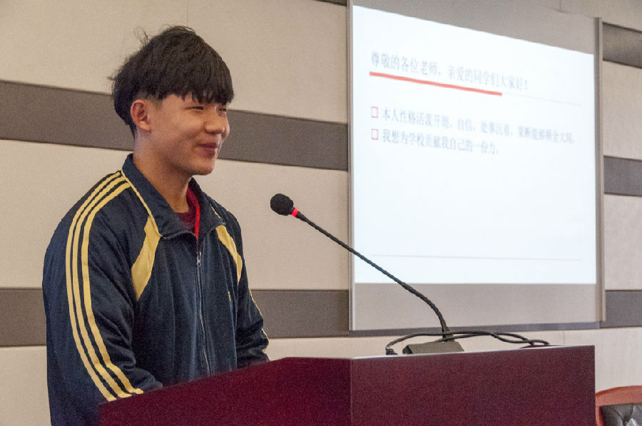 最后,在主持人有序的组织下,干部候选人依次上台进行竞选演讲,台下学生代表们则进行公平投票。经过一个小时的竞选演讲,最终涌现出23名新一届的学生会干部。