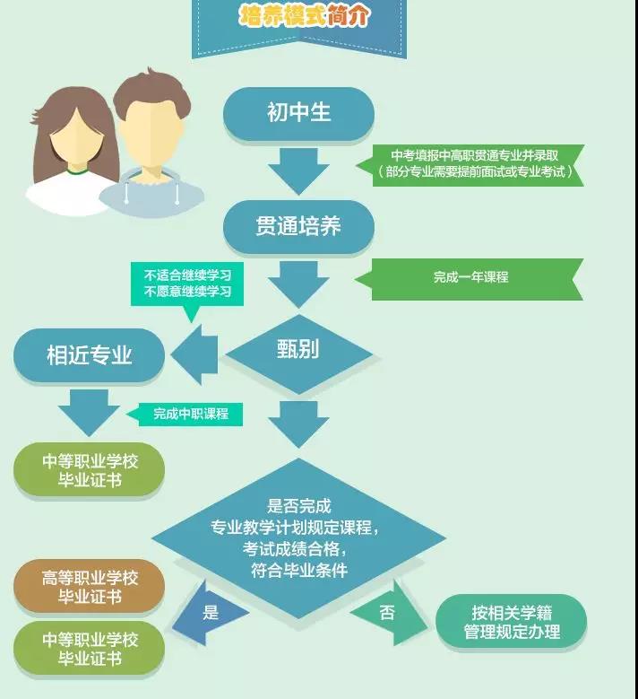 学校是上海市中高职贯通培养模式试点单位,拥有9个中高职贯通专业,学制5年,学生毕业后可获得高职文凭。