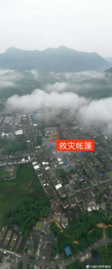 据四川省地震局,震中长宁县双河镇航拍画面曝光,部分建筑垮塌脱落,安置帐篷已经搭起。