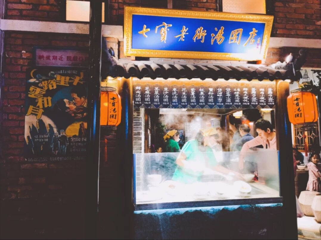 五彩的灯笼饰顶,老上海时代的有轨电 车,船坞码头,霓虹灯石库门,米袋仓库黄包车,还有“复兴号轮船”地道的老字号小吃汇集,就连厕所也相当的特别,真实打造老上海风情的“不夜城”,随处可见的老上海风格的弄堂和店铺让人走在其中仿佛时光倒流一般,你会经常看到穿着旗袍的小姐姐们来打卡,当然也有很多热情高涨的阿姨来这里追忆曾经的似水年华。